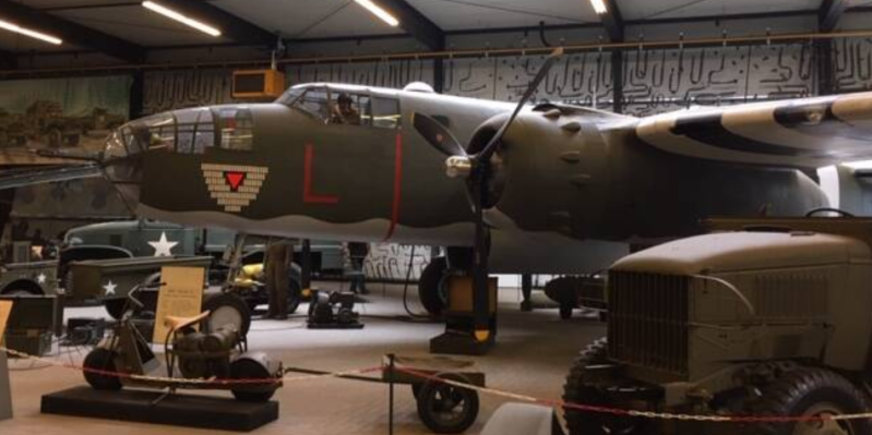 B-25 Mitchell die door Nederlandse squadron in WO2 vanuit Engeland gebruikt werd (foto uit Overloon)